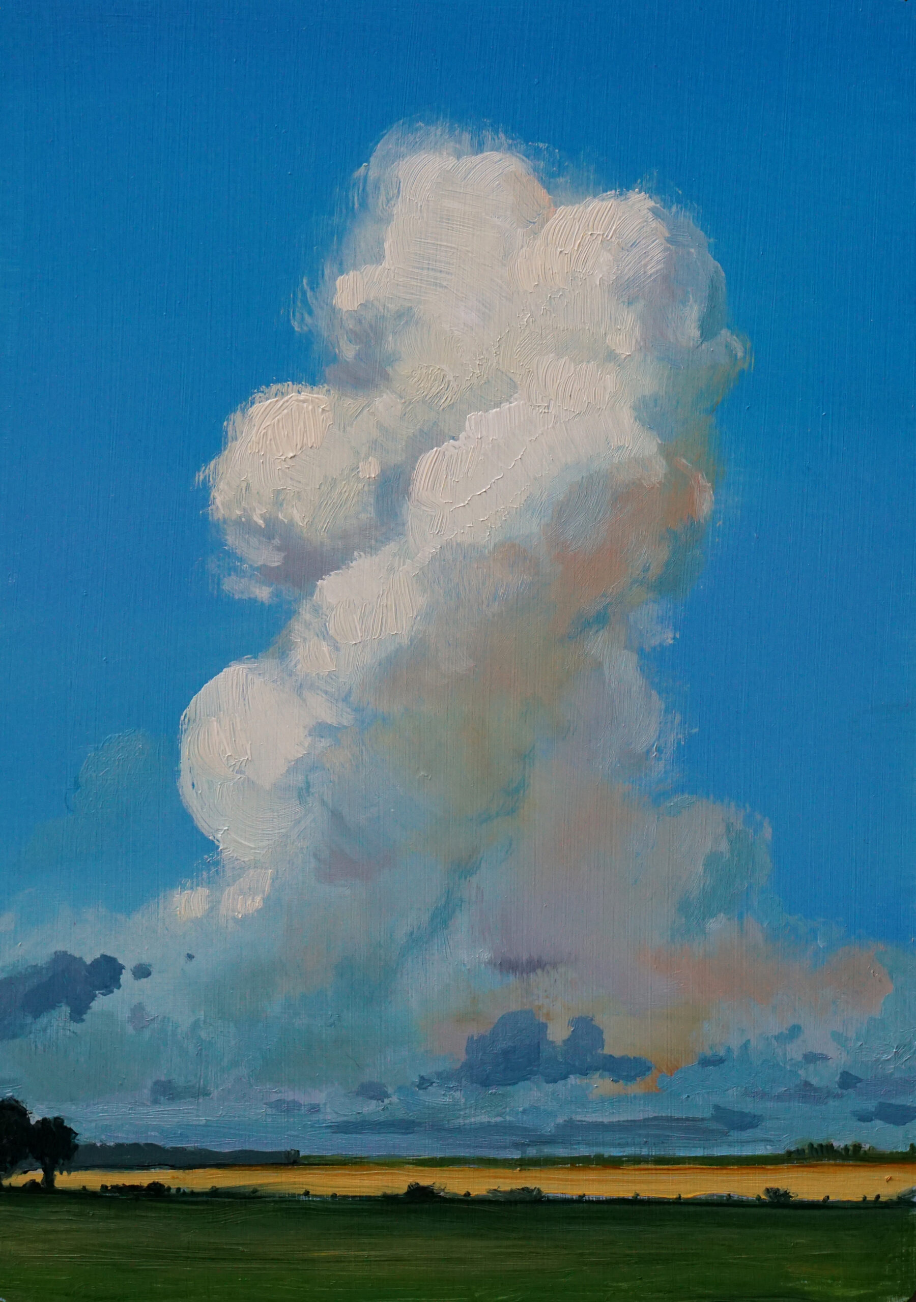 I quite often do little studies trying to catch things that I’ve seen or painting out in the landscape. A lot of these studies end up on the bonfire, or never get framed. This one shows an incredible cloud floating above Balado, where T in the Park used to be.