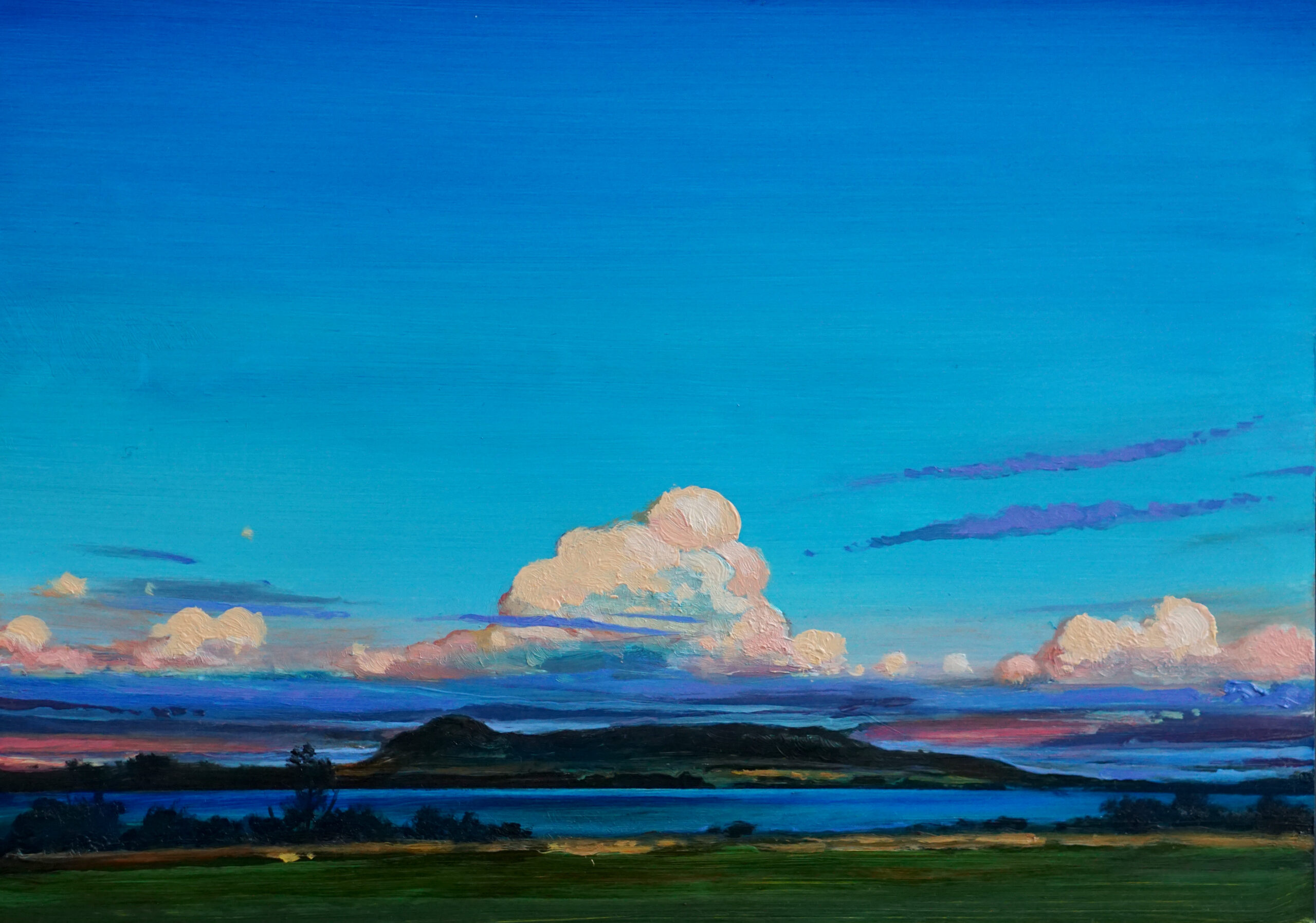 Another wee study or sketch trying to catch a pink cloud in winter over Loch Leven. It was a really cold day in the early winter, the water in the loch was still, and you could only just see the movement in the clouds as the sun set behind me.